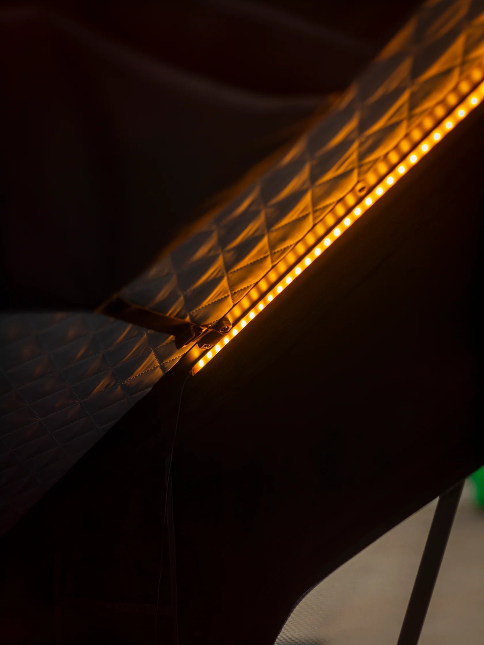 • Lighting: 2.5m dimmable 3 colour LED strip