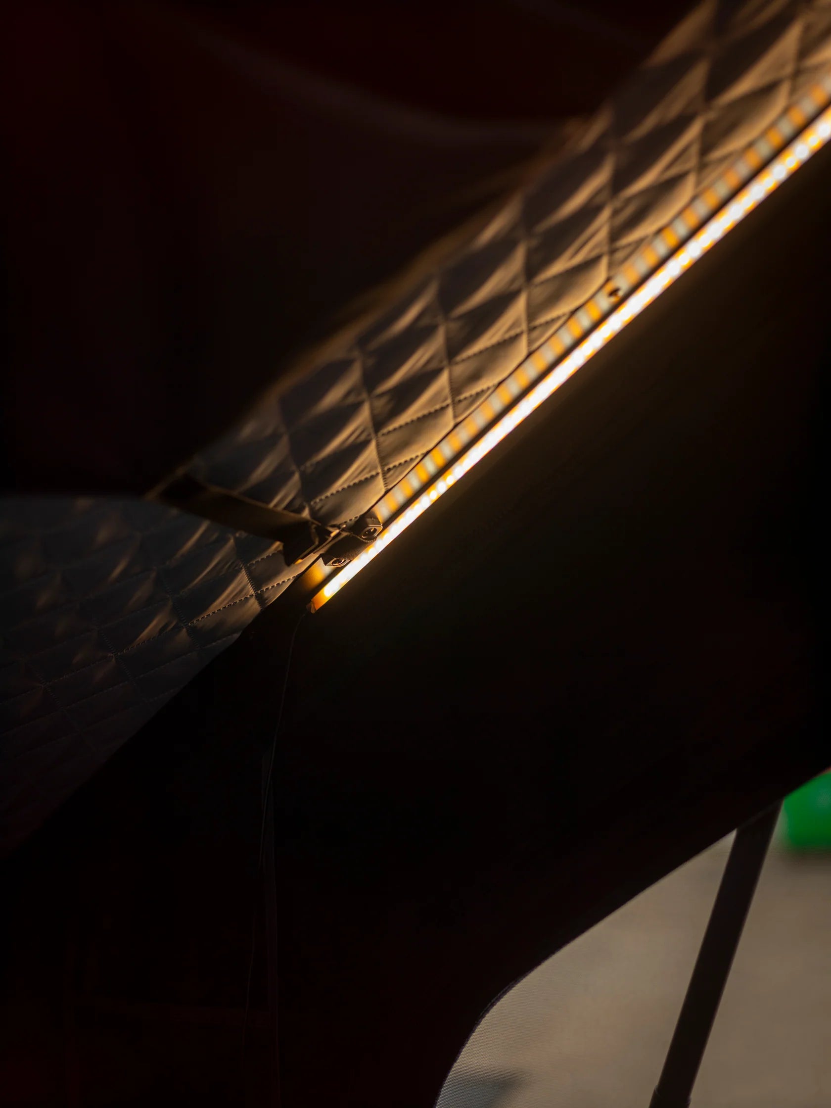 • 320 GSM blackout ripstop poly-cotton canvas — windproof, waterproof, and UV-rated
